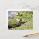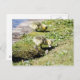 Cute Canada Goose gosling, picking the flower. Postcard.