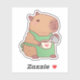 A doodle of a cute capybara with green apron making a latte by pouring milk to the coffee. Perfect for capybara and coffee lovers!