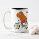 Take a ride with this adorable Cute Capybara Cycling Mug! Featuring a whimsical capybara character pedaling away on a bicycle, this tea cup is the perfect addition to your morning routine or a delightful gift for animal lovers. Made from high-quality ceramic, it has a comfortable handle for easy sipping and is microwave and dishwasher safe. Enjoy your favorite hot beverage while bringing a touch of cuteness and fun to your day with this unique capybara cycling mug.