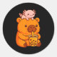 Cute Capybara Drinking Bubble Tea And Axolotl Kawa Classic Round Sticker