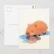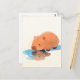 Cute Capybara Drinking from Blue Puddle Postcard