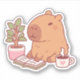 Cute Capybara Enjoying A Good Read And Coffee Sticker