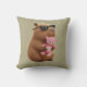 Cute Capybara Hugging Teddy Bear Sage Green Throw Pillow