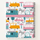 The sweet vehicle pattern, featuring teal vans, pink buses, and yellow and teal cars, complemented by pink hearts, trees, black-lined mountains, and doodle dashes, adorns both front and back covers. Customize the front cover using three editable text boxes: "Rebecca's," "Imagination Avenue," and "Doodle Adventure," setting the stage for boundless creativity!