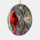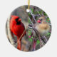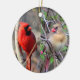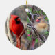 Male and Female Northern Cardinals decorate ceramic ornament. Eye catching birds featured on cermic ornament make ideal choice for holiday decor!