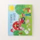 Give your little farmer his or her own special barnyard jigsaw puzzle. Puzzle has a cow, pig, sheep, cat, chicken, horse, and duck. Smiling in the corner is a bright yellow sun and in the foreground is an apple tree and young farmer kid. The pig has baby piglets and the sheep has a little lamb. Personalize the puzzle with your young boy or girl's first name.