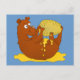 A happy looking, brown, cartoon bear, eating from a beehive or bee nest. This bear looks like a cub as he has a large head and is fairly cute. The is lying in a pool of sticky honey. Thank you for viewing my work.