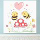 Cute Cartoon Bees with Heart Balloon on Mushroom Canvas Print