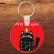 Cute cartoon black cat Christmas tree Keychain