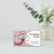 A really cute red cartoon bookworm stares at you through huge spectacles as he raises his bushy eyebrows and gives you a sweet smile. Little smart bookworm scurries his way on all 100 little feet, across a red doodle background while your details appear on the right side of the card, over a brilliant white background. This design is perfect as a light-hearted introduction to your clients as you present yourself as a smart bookworm tutor!