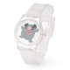 I only have one complaint. I ordered the watch with clear case and strap, and what was sent was white case and strap. I'm going to keep it because 1) it looks very nice in white, and 2) it would take too long to get a replacement made and sent in time for my occasion. Aside from the mix up with the color, the watch does look very good in white. The purple dial is actually sparkly which did not show in the online images. That was a nice surprise. If you like Swatch watches this is very similar to those. It's 33.6mm in diameter, 10.5mm thick, and 40.6mm lug to lug. Stainless steel case back says 3ATM/30m WR, so no swimming or showering or submerging this one. If you like Woodstock, this is a great choice.