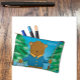 A cute pencil pouch for kids featuring a cartoon brown bear holding a fishing rod . Personalize it with a name .
