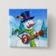 cute cartoon button with guitar playing snowman
