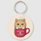 Cute Cartoon Cat in Coffee Mug Custom Text Keychain
