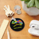 Create a personalized keychain or keyring featuring a cute, cartoon style illustration of a chameleon in bright and vibrant colors set against a black background. Your name appears in bold, lime green lettering.