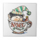 Cute Cartoon Christmas Elf Sleeping in a Tea Cup Tile