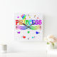 Cute Cartoon Clip Art Rainbow Princess Tiara Square Wall Clock