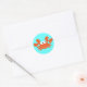 Blue kid’s stickers with a cute smiling orange cartoon illustration crab. Background color is customizable – loads of colors to choose from. Please visit my Molly Sky Designs store for Spanish scenery & animal photography & loads of fun, cute & retro illustrations. A wide range of products available: mugs; travel mugs; key chains; sneakers; stamps; T-shirts; ties; skateboards; magnets; greeting cards; postcards; mouse pads; aprons; ties; dog clothing; bags; buttons/badges; stickers; caps; wedding related products; children & baby clothes; hanging ornaments; pins/brooches; bookmarks (in bulk); posters, & binders.