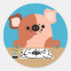 This cute cartoon pig has been creative with ink and brush, drawn a self-portrait and stamped his own snout onto the sheet, to complete the likeness :) Fully customizable and available on various products. Part of a serie of little pigs at study, sitting at a desk in front of a sheet of paper.