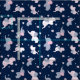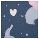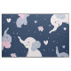 Pink and gray cute cartoon-style elephants in a seamless pattern on a custom navy-blue background.