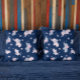Cute cartoon elephants pattern on navy-blue throw pillow