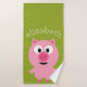 Cute Cartoon Farm Pig - Pink and Lime Green Bath Towel