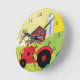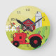 Cute wall clocks that feature a farm design of a red tractor with a rooster on top, in front of a red barn, and silo. These customized clocks would look adorable in child's bedroom, a country themed baby nursery, or a country themed home.