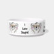 I love the pet bowls I bought for my 3 Granddogs when they come over my house. They are the perfect size to feed them when they are here for a visit. The design of their names on the bowls is great!