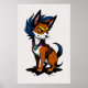 Cute Cartoon Fox with Blue Hair | AI Art Poster