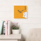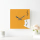 Cute Cartoon Funny White Cat Monogram Yellow Square Wall Clock