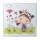 Cute Cartoon Girl with Ladybug in Garden Scene Tile