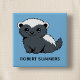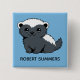 Cute Cartoon Honey Badger Custom Name Blue Button