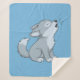 Cute Cartoon Howling Wolf Pup Blue Sherpa Blanket