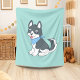 Cute Cartoon Husky Puppy Dog Green Fleece Blanket