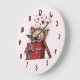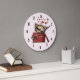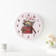 Cute Cartoon Kitten with Hearts Large Clock