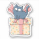 A curious kitten on top of a mysterious gift box: This cute sticker is great for decorating gifts and delighting cat lovers!