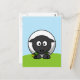 Simple, adorable cartoon sheep. The cute little lamb is chewing on a yellow flower.
