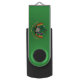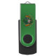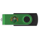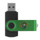 USB Flsh Drive with an Illustration of a cute smiling leprechaun wearing a green suit, a top hat while holding a shamrock leaf, with a colorful rainbow in the background and text saying "Happy St. Patrick's Day"