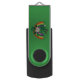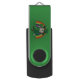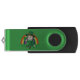 USB Flash Driver with an Illustration of a cute smiling leprechaun wearing a green suit, a top hat while holding a shamrock leaf, with a colorful rainbow in the background