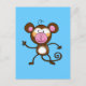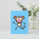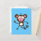Bring smiles and fun with this adorable and customizable postcard featuring a hand drawn cartoon monkey with big pink cheeks, playful arms, and a curly tail. Set against a bright blue background, this cheerful design is perfect for kids, animal lovers, classrooms, birthday invitations, or just sending a happy hello. Great for teachers, parents, or anyone who enjoys whimsical, lighthearted artwork. This playful monkey adds joy to any message you send. Personalize it with your own text on the back to create a fun and memorable greeting!