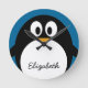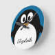 cute cartoon penguin blue background round clock