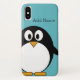 Cute Cartoon Penguin Custom Name Blue Case-Mate iPhone Case