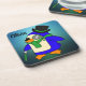 Cute cartoon penguin light teal emerald green beverage coaster
