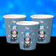 Cute blue paper cups for your winter party featuring a sweet cartoon penguin sipping on a hot cocoa . Add a lid if you wish . Look in our collection for matching plates and napkins .