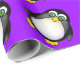Super cute cartoon penguin with green googly eyes on a purple background. Perfect wrapping paper for kid's birthdays.