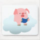 Cute Cartoon Pig Reader on Cloud Mousepad
