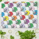 Multi-colored cartoon sheep pattern on quirky kitchen towel.