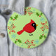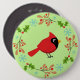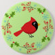 Cute Cartoon Red Cardinal with Flowers Button