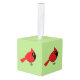 Cute Cartoon Red Cardinal with Flowers Cube Ornament