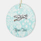 Lightweight, smooth, pure white ornament with nice sheen. Perfect size to be seen from across the room ... and to attract closer inspection! Price was great for ordering enough for the whole family! Clear, bold black design just as requested. Matches the order exactly. Just so nice!